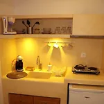 Este apartamento ofrece una pequeña cocina equipada con hervidor eléctrico, nevera y utensilios de cocina y servicio de tetera/cafetera.